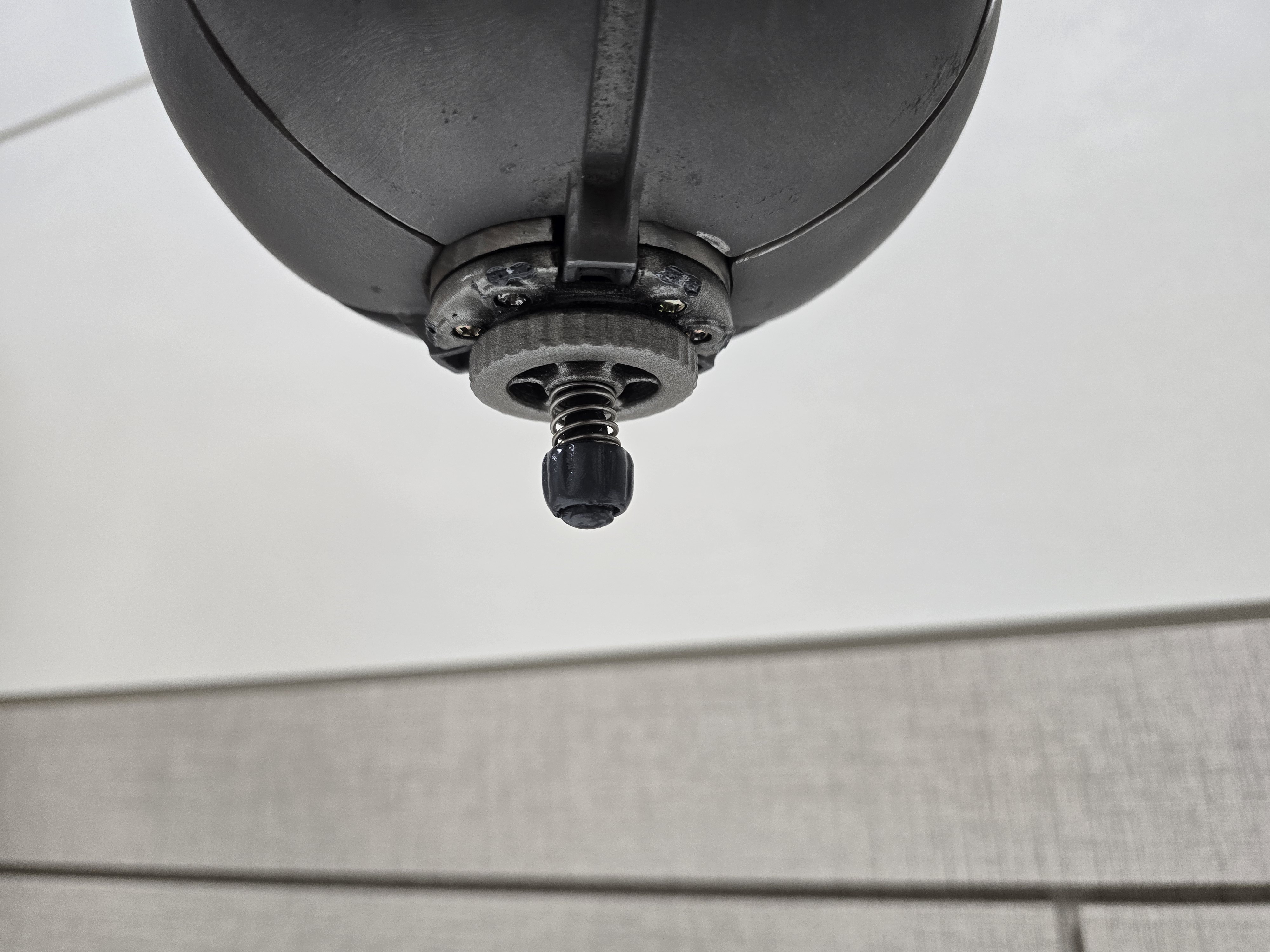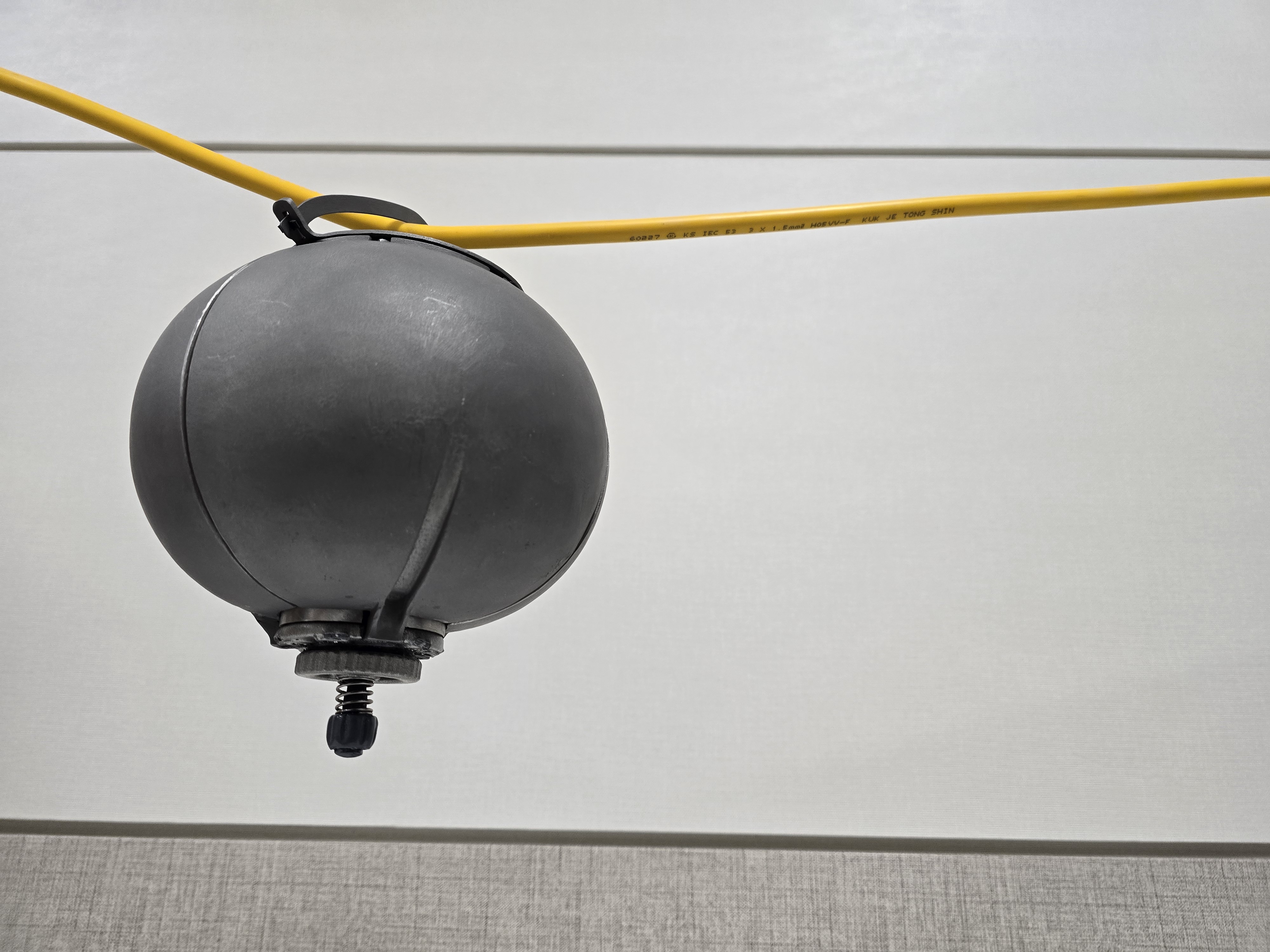 설명 : 소화기 수류탄입니다. 약실에 소화약재를 놓고, 화재 발생 시 수류탄이 자동으로 투하되어 소화 작업을 해 줍니다.